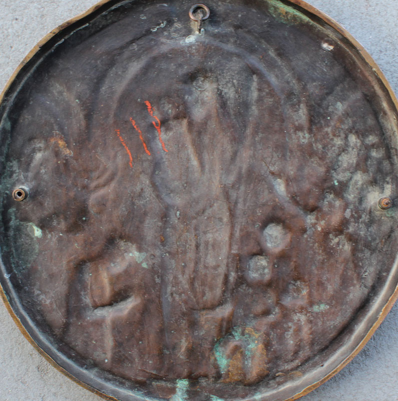 JUDAICA BRONZE PLAQUE: Inscribed, ''My House Shall Be Called a House of Prayers For All Peoples'', 12 1/4'' diameter, illegible monogram lower right.