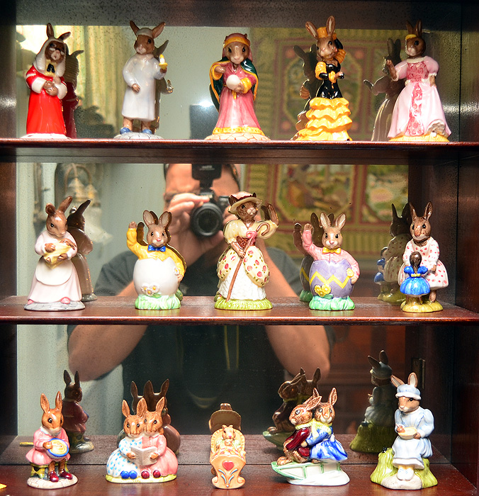 15 ROYAL DOULTON BUNNYKINS FIGURINES: 15 pieces total to include ''All Tucked In'', ''Storytime'', ''Cinderella'' (fan has separated from her hand, 4 5/8'' h.), ''Little Miss Muffet'', ''Helping Mother'', ''Little Bo Peep'', 2 ''Easter Surprise'', ''Judge Bunnykins'', ''Billie & Buntie'', ''Playtime'', ''Mother & Baby'', ''Flamenco'', ''Fortune Teller'', ''Wee Willie Winkie''.