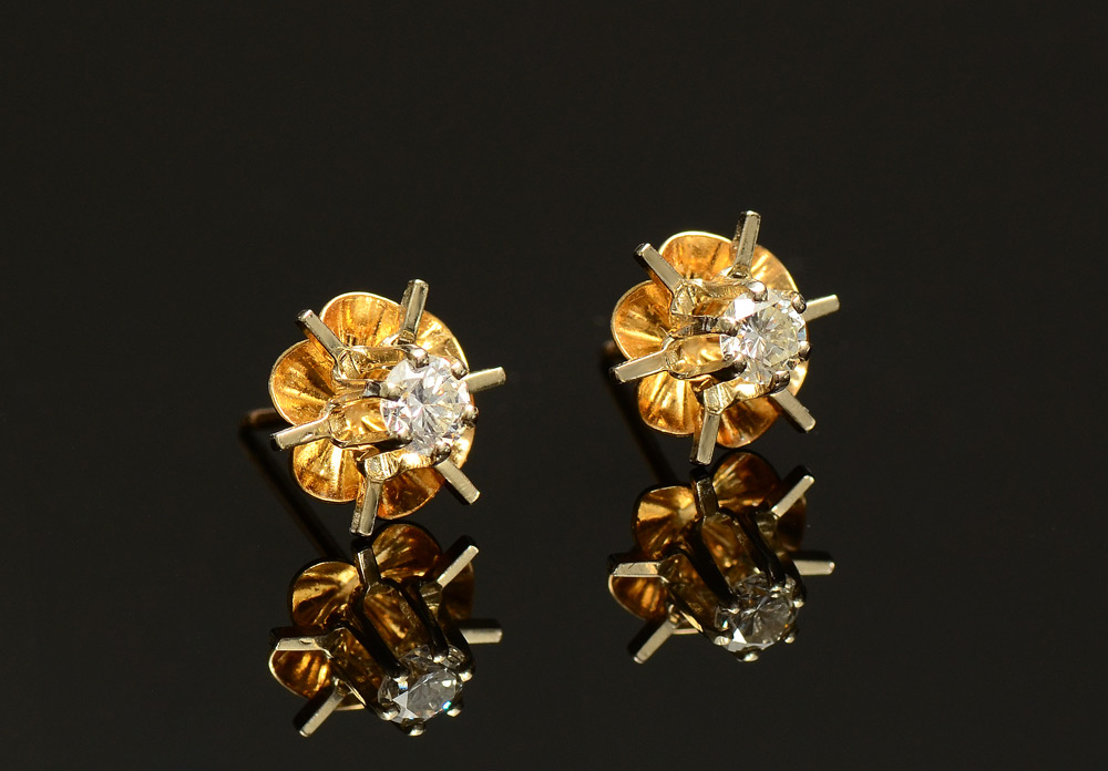 DIAMOND STUD EARRINGS: 14K yellow gold earrings, diamonds total approx. .40 Ct. Averaging VS1-VS2 clarity and G-H color. Weight 2.1 grams.