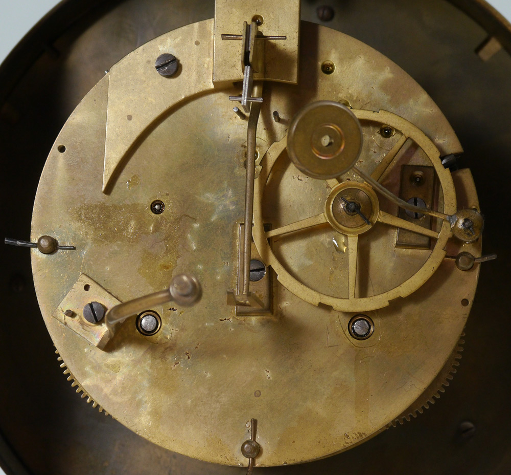 CONDITION: Needs suspension spring replaced, multiple chips to slate, wear to dial, currently running however not guaranteed to continue. Key in office.