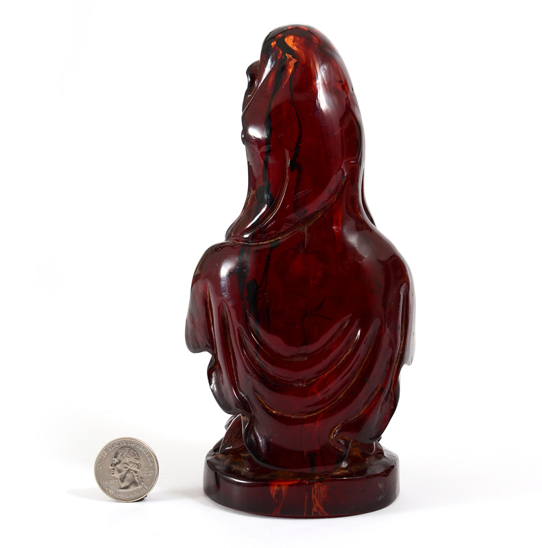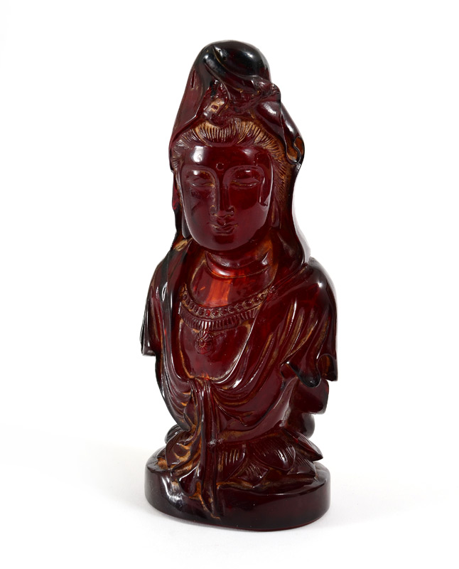 CHERRY AMBER BUST OF QUAN YIN: 7'' h. x 3 1/2''.