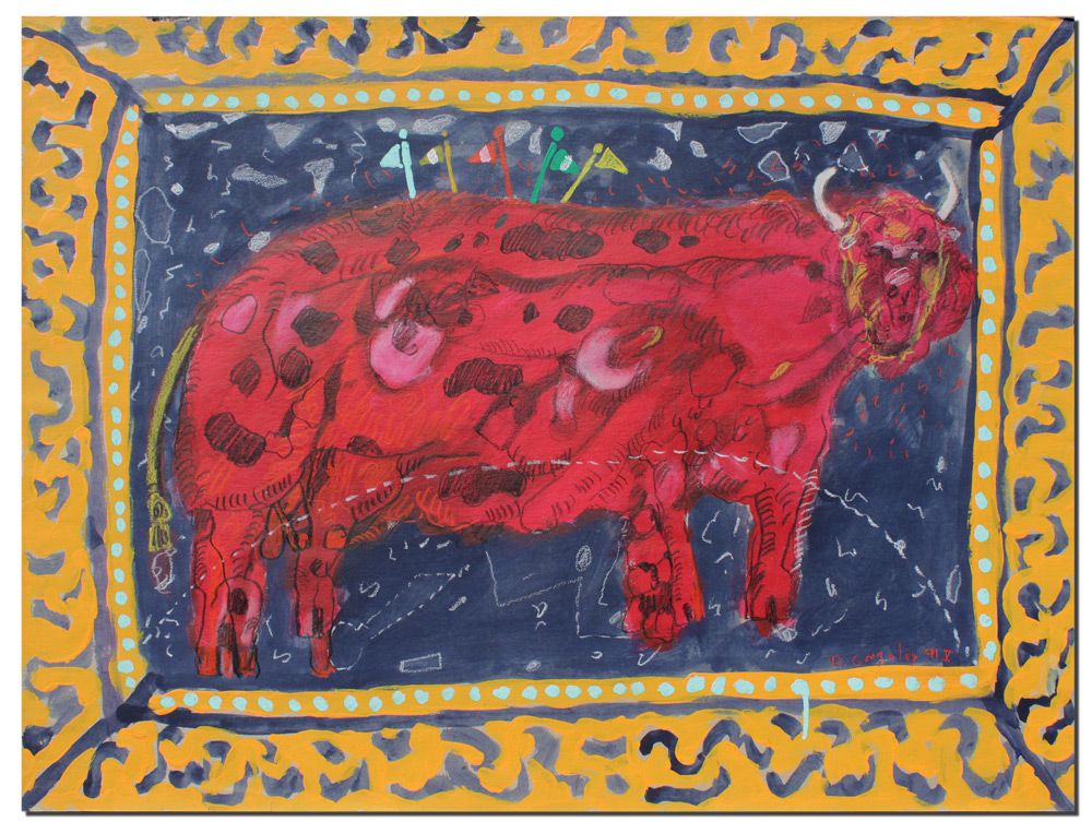 GONZALEZ, Raymundo, (Mexican, 20th Century): Abstract Red Bull, Mixed Media, Gouache, Pastel & Watercolor on Paper, 27 3/4'' x 37 1/2'', unframed, signed lower right, dated '91 V.