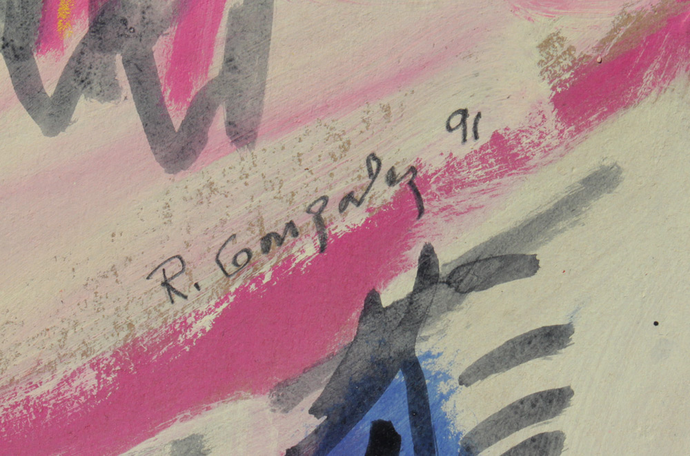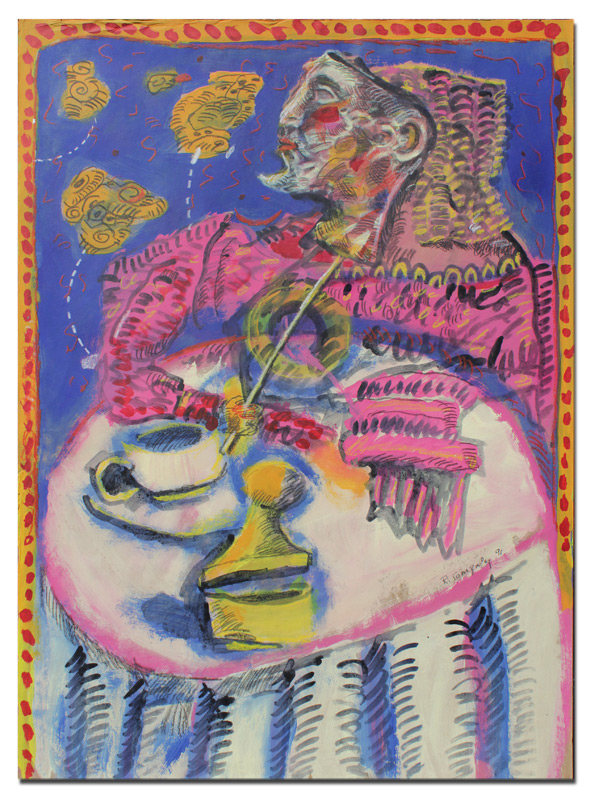GONZALEZ, Raymundo, (Mexican, 20th Century): Abstract Figure Seated at the Table, Mixed Media, Gouache, Watercolor & Pastel, 37'' x 27 1/2'', signed lower right, dated '91, unframed.
