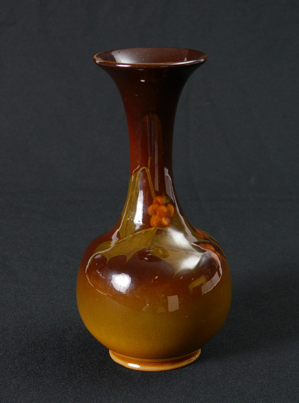 CARRIE STEINLE ROOKWOOD STANDARD GLAZE VASE: Form 481, 1900 date mark, Carrie Steinle artist incised mark, holly decoration on body. 9 1/8'' h. x 4 1/2''.