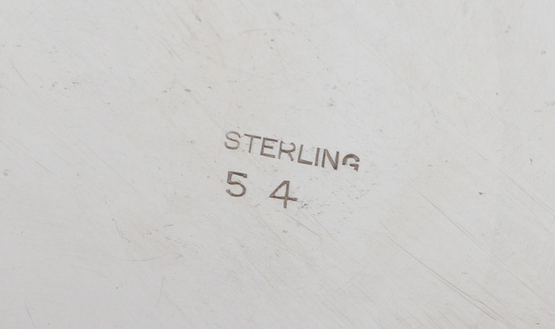 LARGE STERLING PRESENTATION BOWL: Pedestal bowl with embossed floral motifs on elongated rim. Engraved presentation center of bowl ''Robert F. Ryan, PESO President, 1975-1976''. Simply marked Sterling, 54. 3 1/4'' h. x 11 1/4'' dia., approx. 10.6 troy oz.