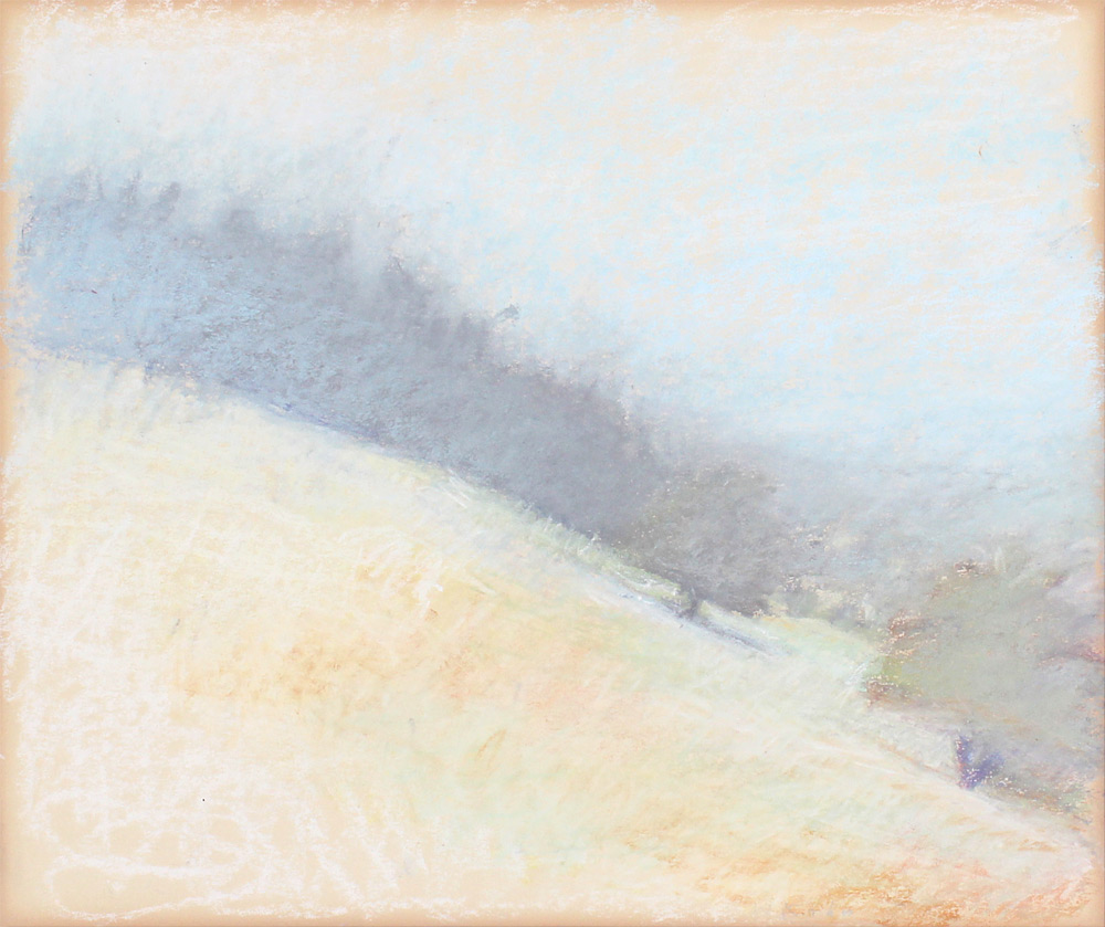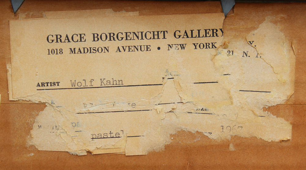 KAHN, Wolf, (American, 1927- ): ''Slope'', Landscape with Gray Trees, Pastel, Sight size 13'' x 16'', encased in a Kulicke Plexiglas period frame 20 3/4'' x 23 3/4'', signed in the lower right corner, bears a Grace Borgenicht Gallery New York label, purchased directly from the artist in the 60's.