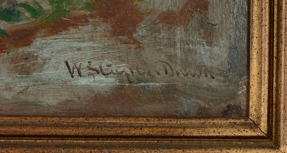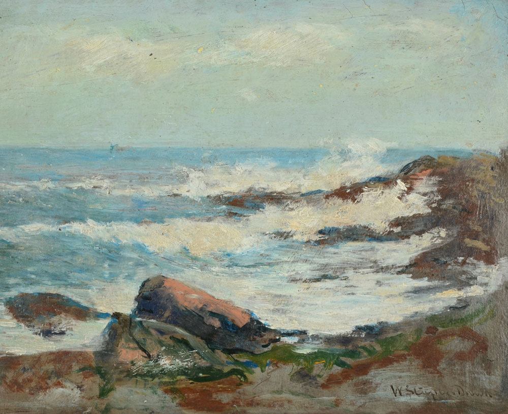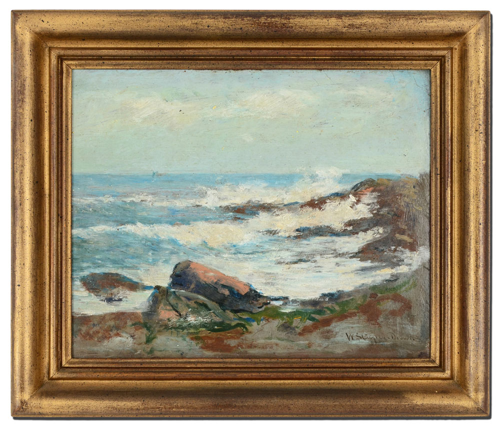DROWN, William Staples, (American, 1856-1915): Coastal Scene with Surf Crashing, Oil/Board, 10'' x 12'', signed lower right, painted wood frame 13 1/2'' x 15 1/2''.