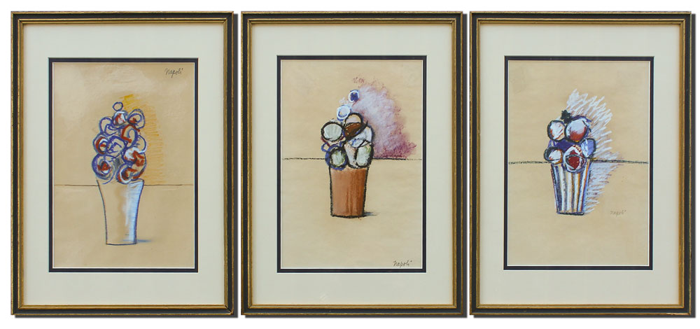 NAPOLI, Giuseppe, (American, 1929-1967): Three Framed Pastel Still Life Drawings, sight size 11 1/2'' x 8 1/4'', all signed, encased in matching frames 17'' x 13''. From the Collection of Anna Howard Gallery.