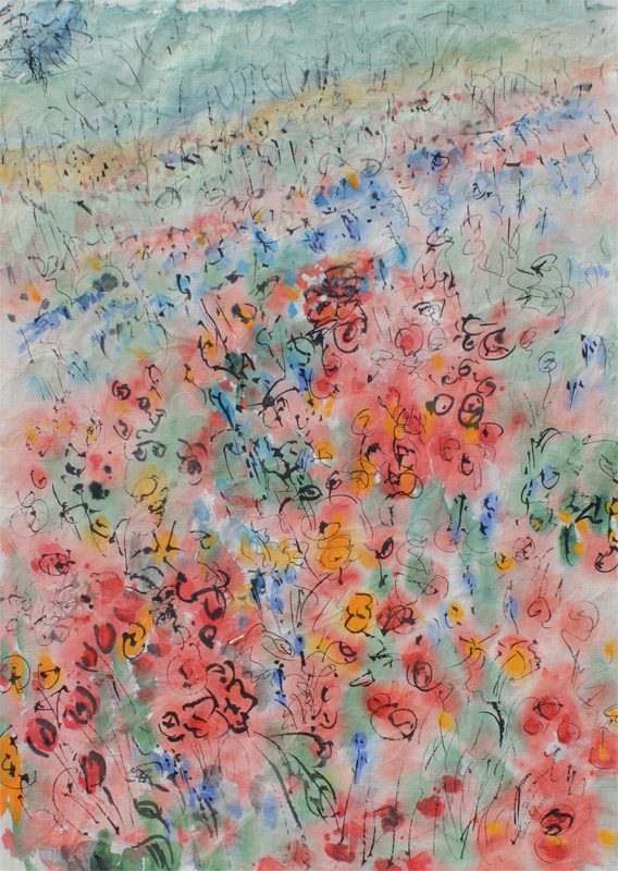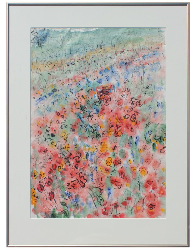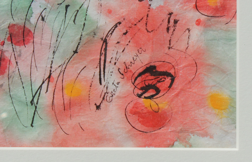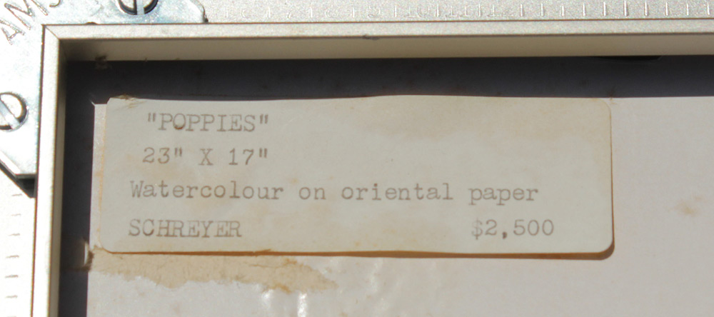 SCHREYER, Greta L., (American, 1923-2005): ''Poppies'', Watercolor on Oriental Paper, Sight size 23 1/4'' x 17'', signed lower left, labeled verso with a price tag of $2,500, contemporary nickel brush frame 30 1/4 x 23 1/4'' , from the Anna Howard Gallery Collection.