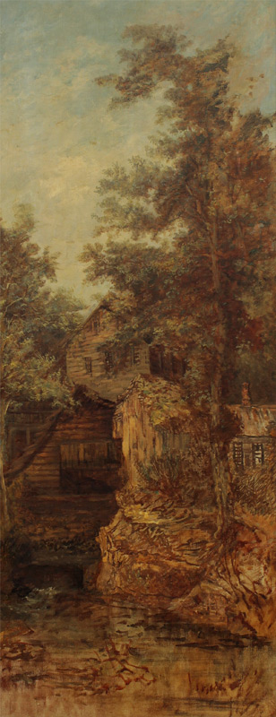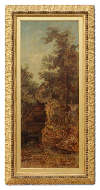 GREATOREX, Eliza Pratt, (American, 1819-1897): ''Rock Springs'', Oil/Canvas, 40 1/2'' x 16 1/2'', signed and tilted on the stretcher verso, incised collection serial number in the frame, encased in custom gilded and carved period foliate motif 49'' x 25''.