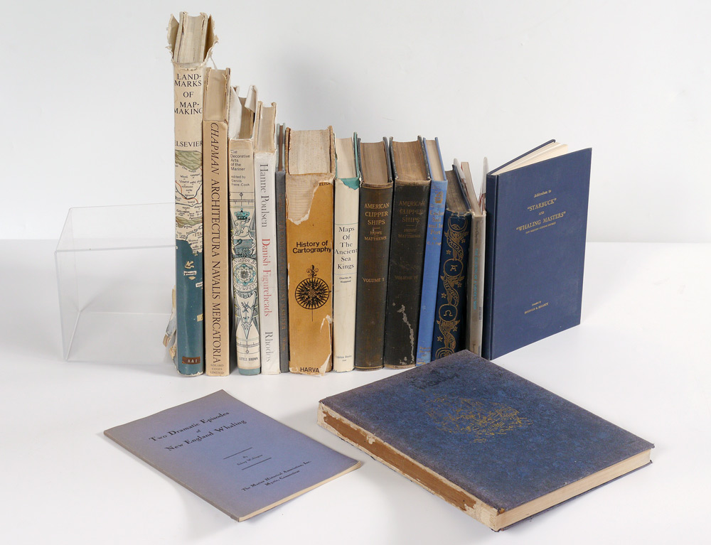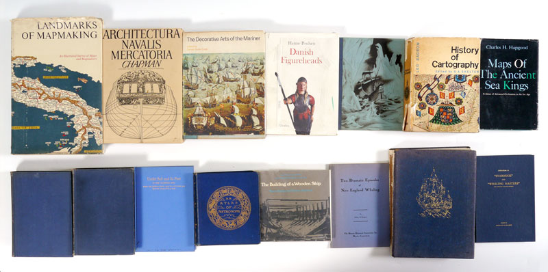 15 VOLUME COLLECTION OF NAUTICAL THEMED BOOKS: 15 assorted books based on nautical themes, highlights to include 2 volumes ''American Clipper Ships'' by Octavious Howe and Frederick Matthews, ''History of Cartography'' by Leo Bagrow, ''Landmarks of Mapmaking'' text by Charles Bricker, ''Under Sail and in Port'' by Charlotte Page and more.