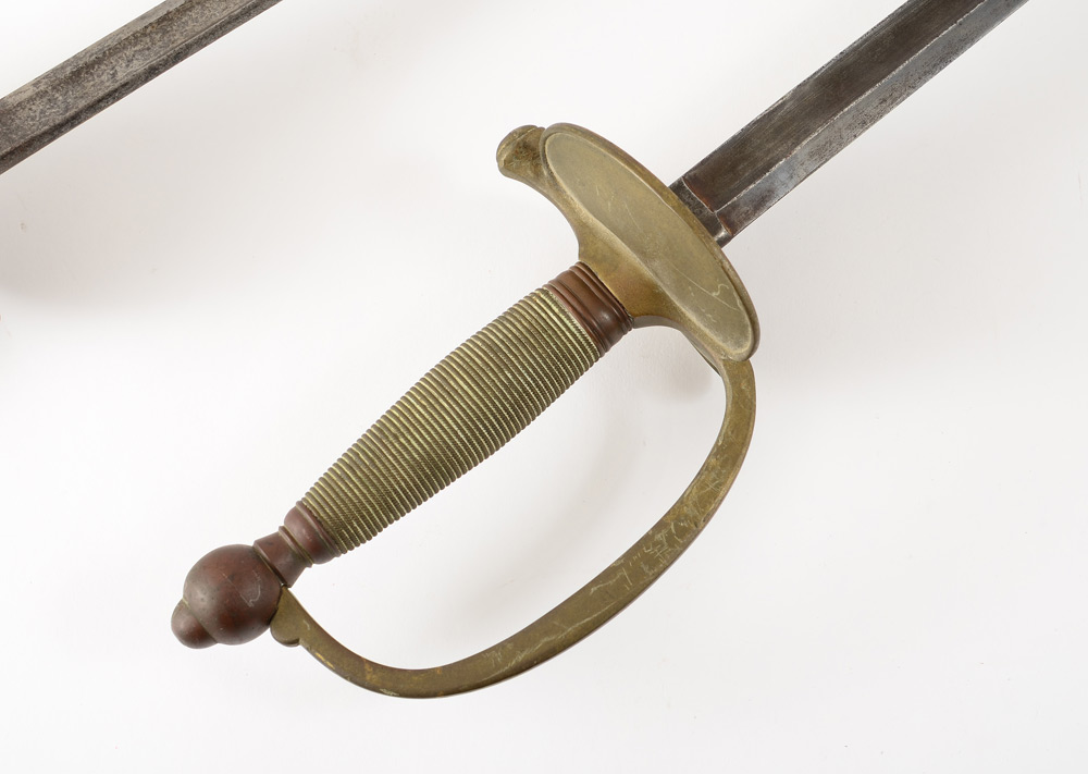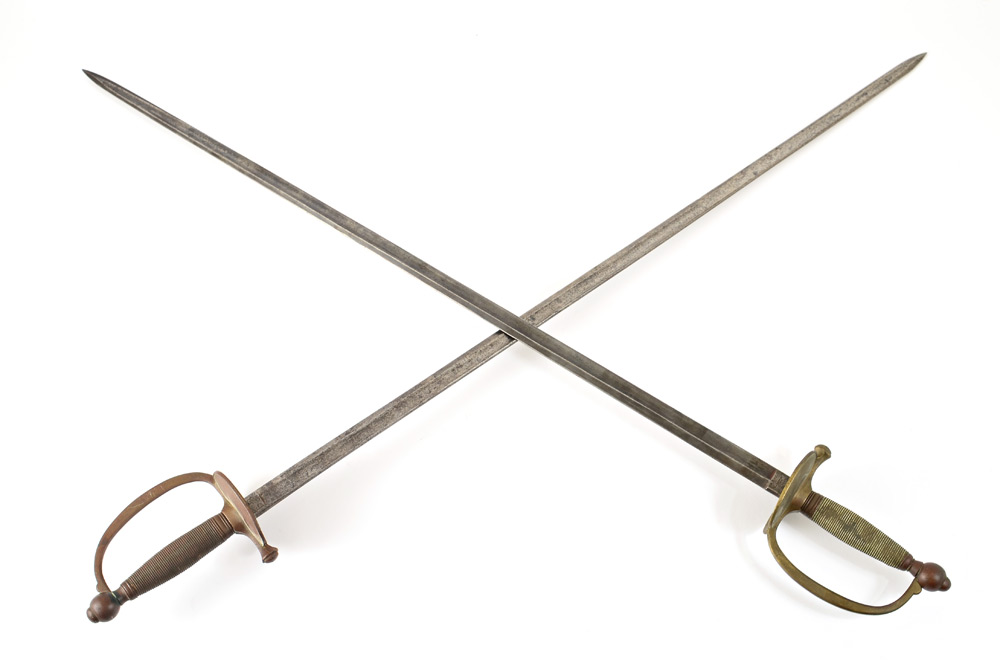2 MODEL 1840 NCO CIVIL WAR ERA SWORDS: Model 1840 non-commissioned officer swords, both with all brass hilts, no scabbards, to include 1) Ames marked 32 1/4'' blade, dated 1864. 2) Collins & Co. marked 32'' blade, dated 1862.