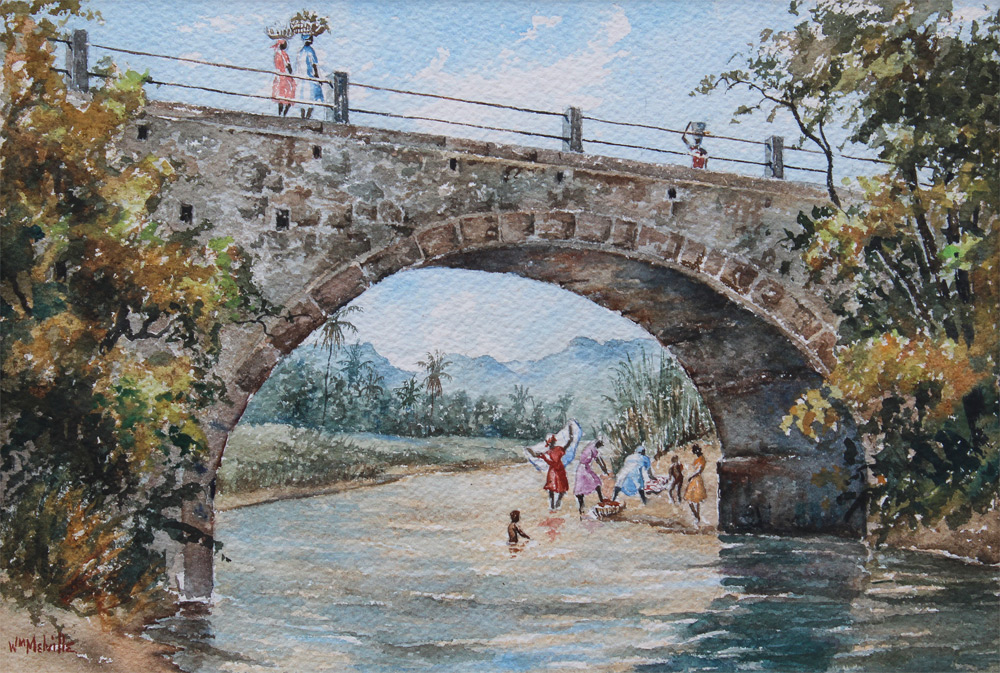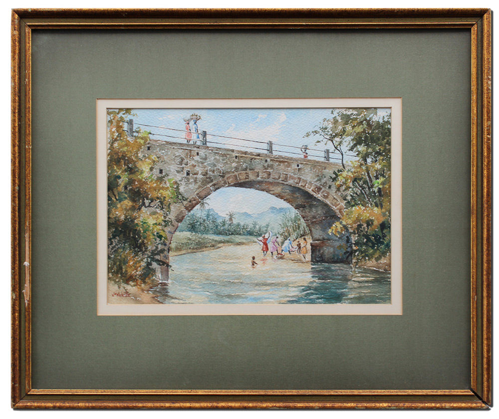 MELVILLE, William, (British, 1815-1851): Island Washer Women at the Bridge, Watercolor, Sight size 8 1/4'' x 12 1/2'', signed lower left, worn frame 17 1/4'' x 21''.