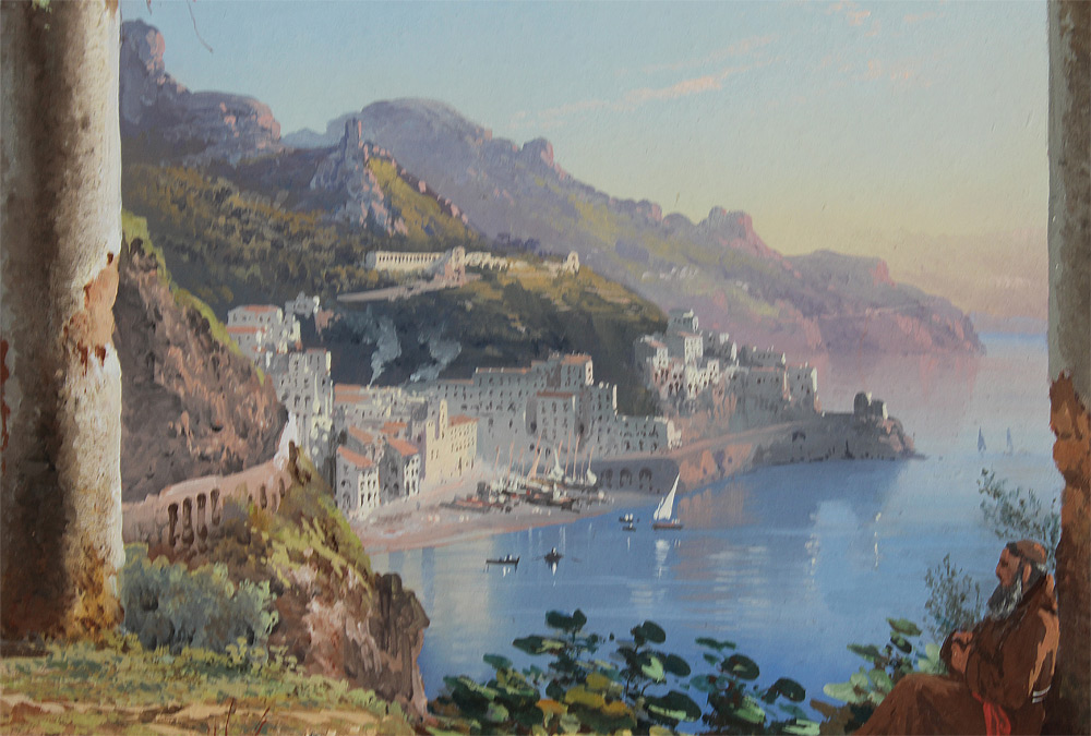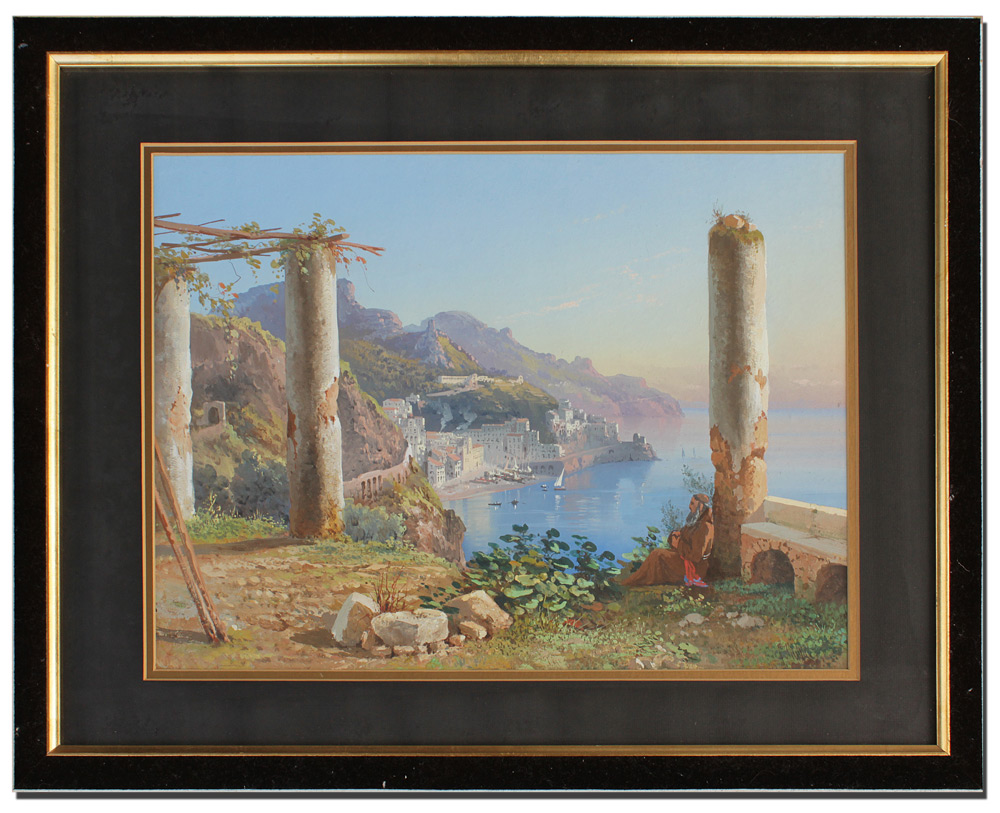 GUISTI, Guglielmo, (Italian, 1824-1916): Amalfi Coast from the Ruins, Gouache, Sight size 13 1/4'' x 18 1/2'', signed lower right, encased in a newer liner 20'' x 26''.