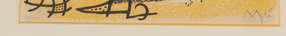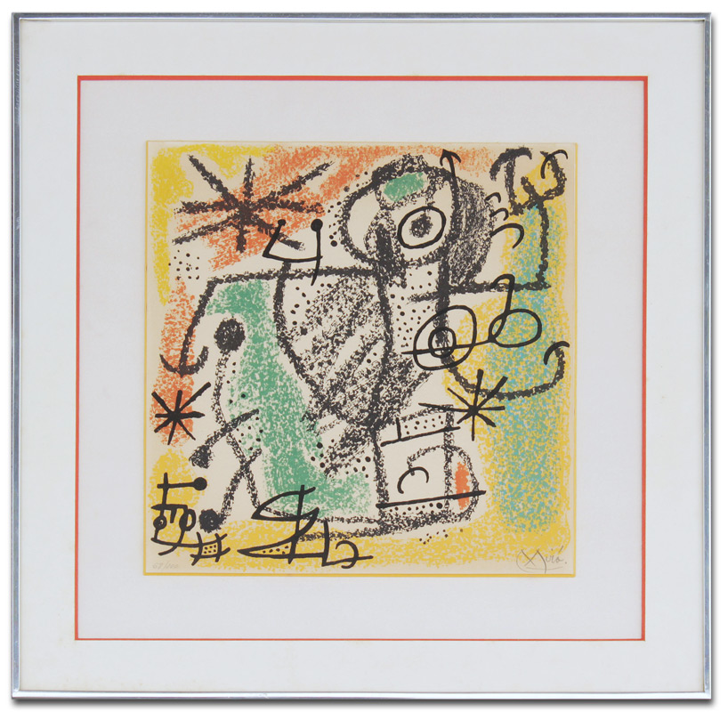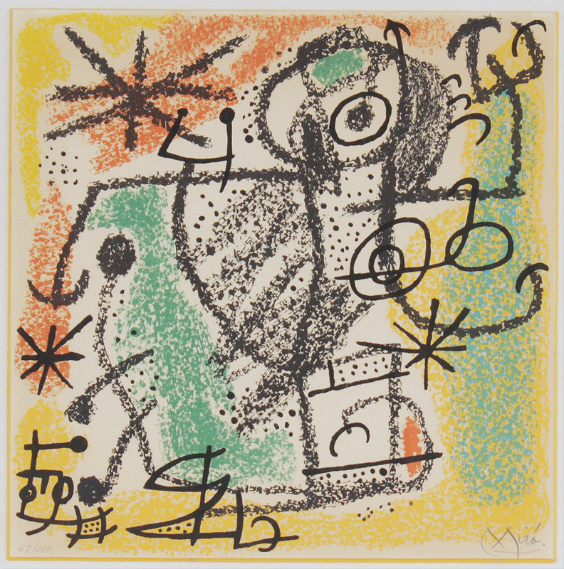 MIRO, Joan, (Spanish, 1893-1983): ''The Essences of the Earth'', 1968, Lithograph, signed in pencil lower right, #'d 68/100 lower left, encased in fine contemporary frame, 16 1/2'' x 16 1/4''.