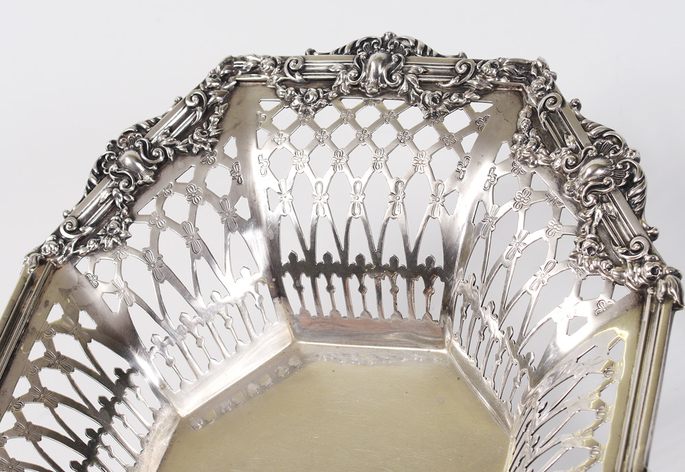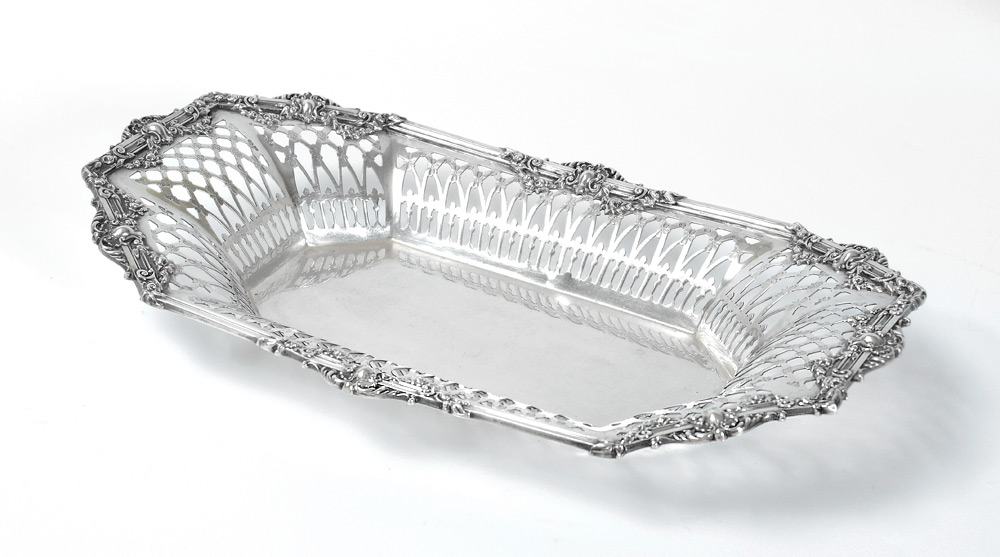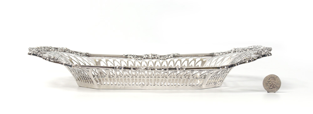 TIFFANY & CO. RETICULATED STERLING TRAY: Reticulated rim with embossed floral swags. Marked ''Made For Tiffany & Co., Sterling, 5388S. Measures 2 1/8'' h. x 13 1/2 ''x 8''. Approx. 16.9 troy oz.