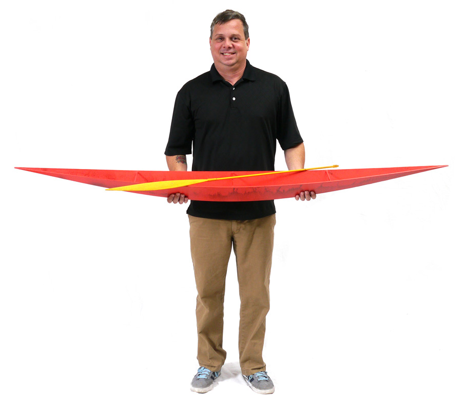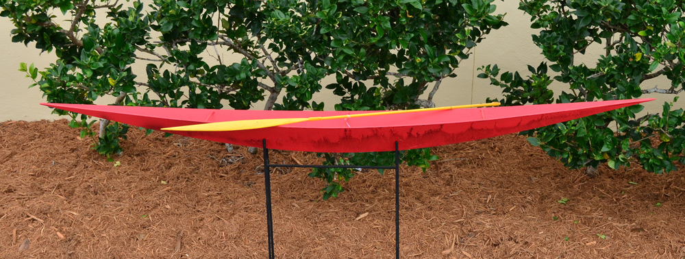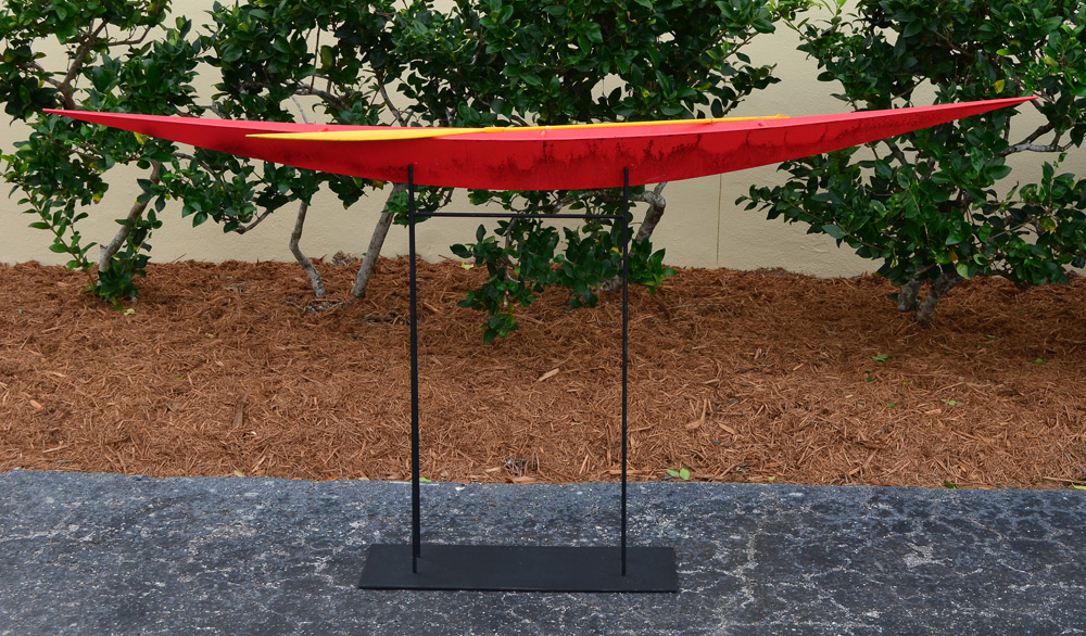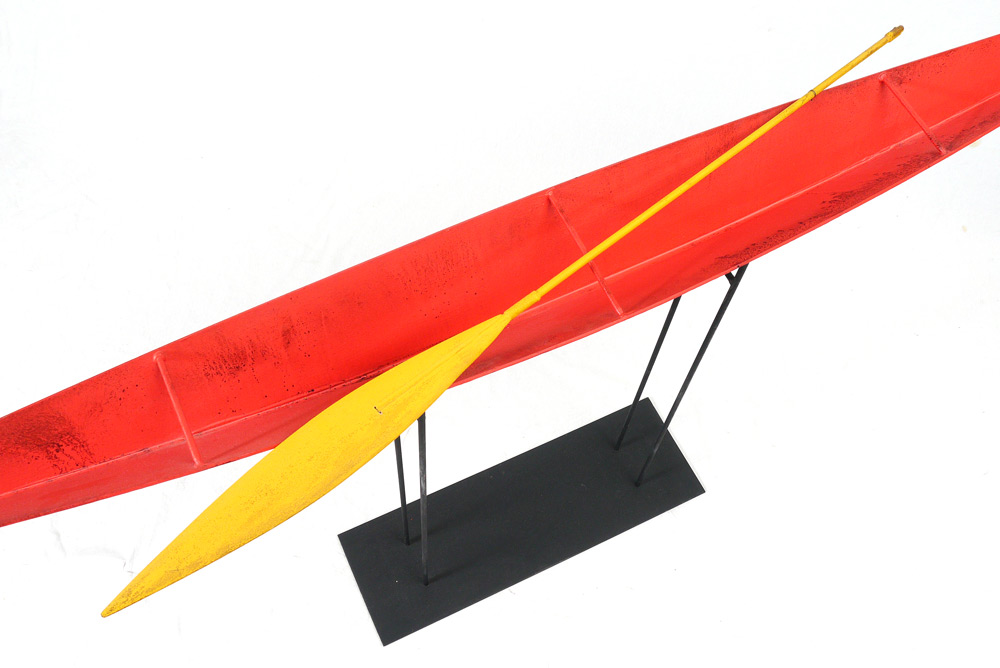 ALEXANDER, Scott, (American, 20th Century): Red Scull with Oar, 72'' l., sits on a painted metal base, overall height 34 1/2''.