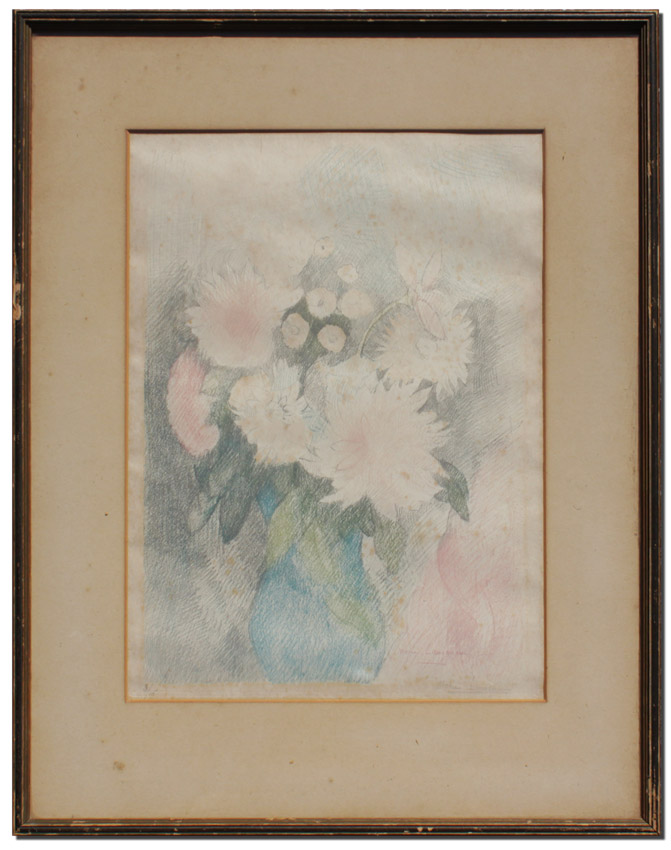 LAURENCIN, Marie, (French, 1883-1956): Bouquet of Flowers in a Vase, Lithograph, Sight size 13 3/4'' x 10 1/4'', pencil signed lower right, #'d 3/15 lower left, encased in original gilded frame with wear 20'' x 16''.