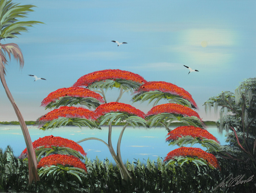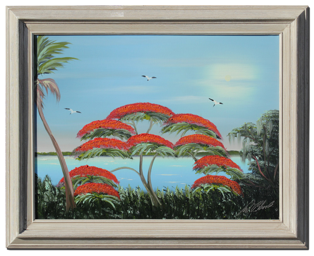 BLACK, Al (American, 20th Century): Florida Highwaymen Royal Poinciana in landscape, Oil/Canvas, signed lower right, 18'' x 24'', painted frame 23 1/4'' x 29 1/4''.