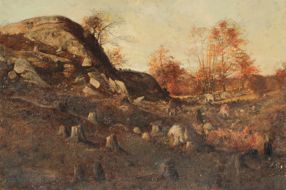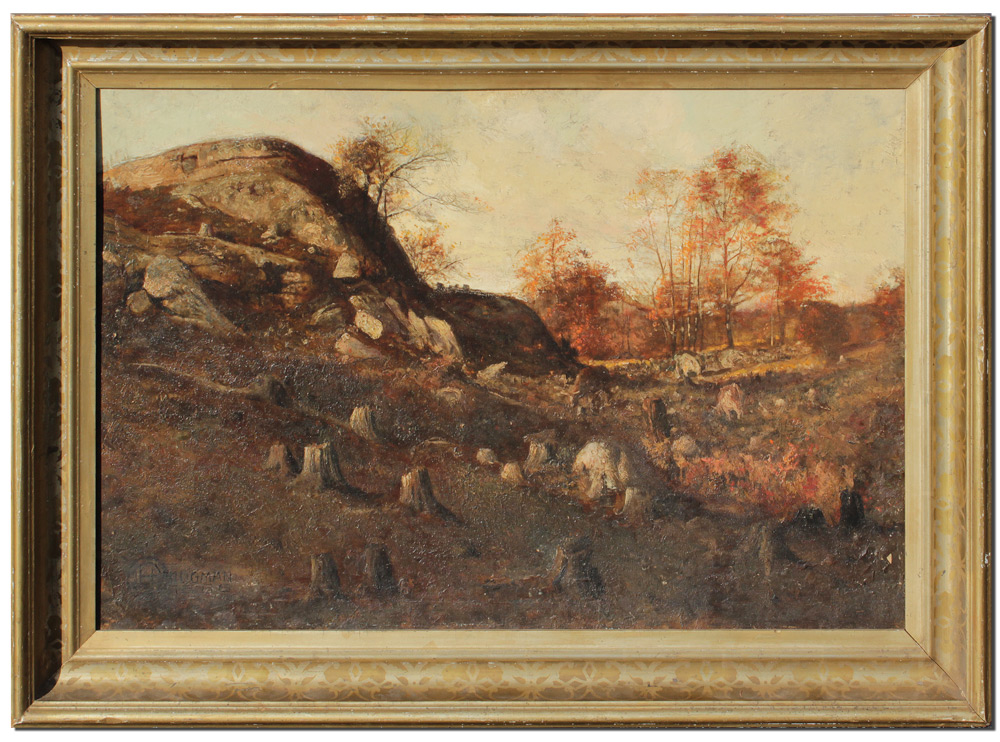 BRIDGMAN, Charles, J., (American, 1841-1895): ''Rocks Near Winthrop Beach'', Oil/Canvas, mounted to board, 20'' x 30'', signed lower left, dated 1886, encased in a period gilded frame with wear 25'' x 35''.