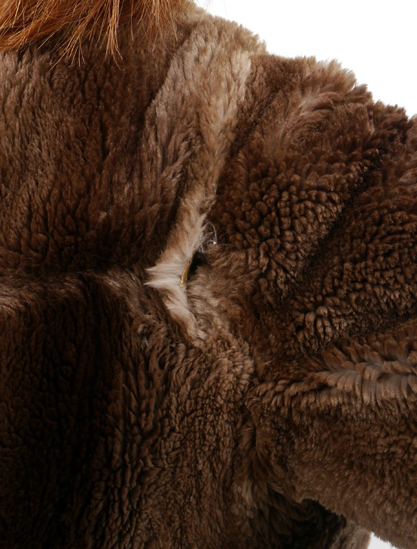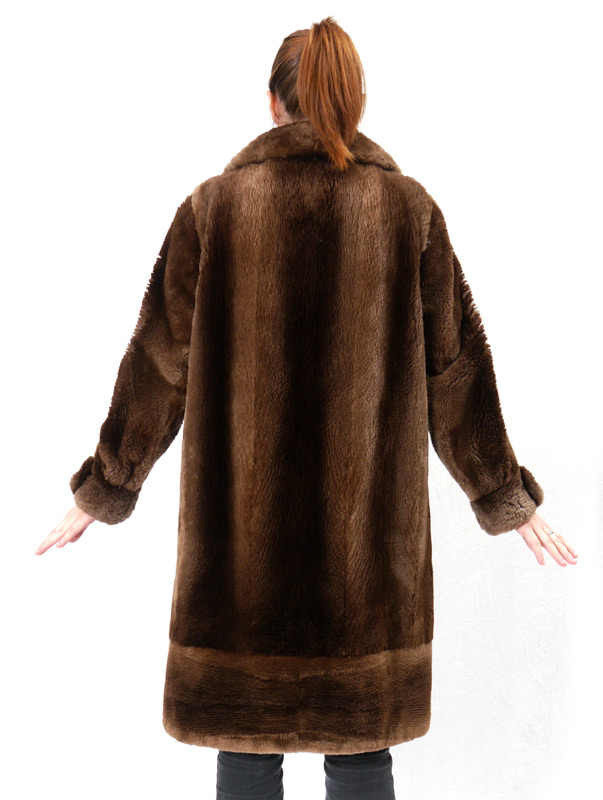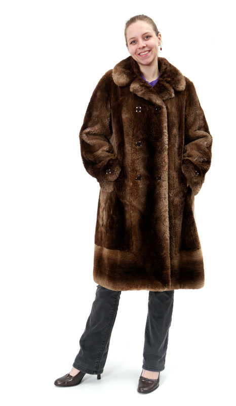 BEAVER FUR COAT: Dense beaver fur coat with lapel collar, original vintage buttons on front and cuffs. Measures approx. 38'' l. collar to hem. Size S-M.