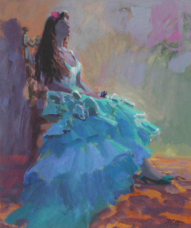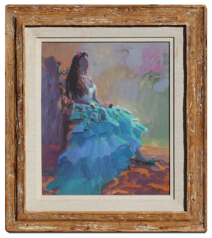 PUTMAN, Donald, (American, 1926-): Beauty in Blue, O/B, 24'' x 20'', signed LR, custom oatmeal frame with Belgian mat, 35'' x 30''. Provenance: Jokake Inn