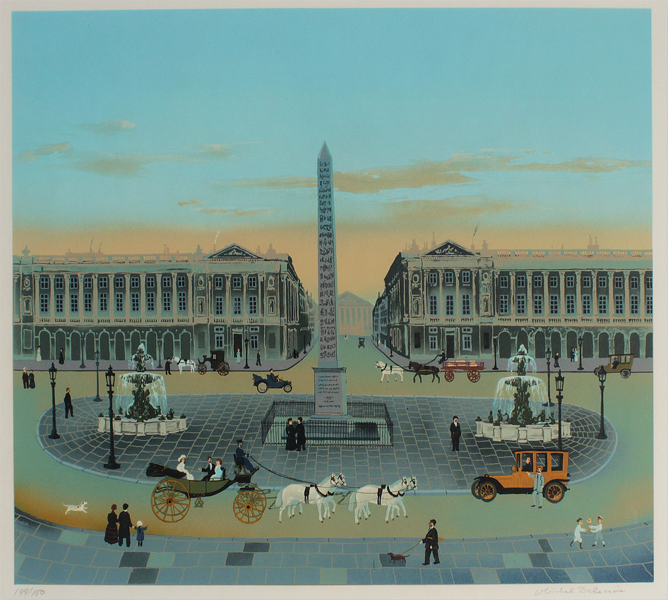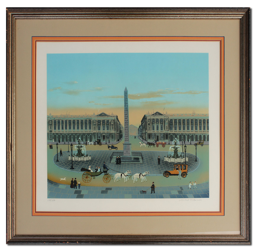 DELACROIX, Michel, (French, 1933- ): ''Place Concorde'', Original Color Lithograph, Sight size 22'' x 25 1/2'', pencil signed lower right, #'d 149/150 lower left, original frame with minor wear 30 1/2'' x 34''.