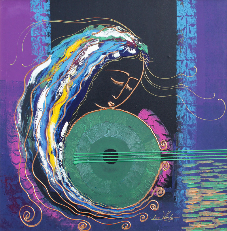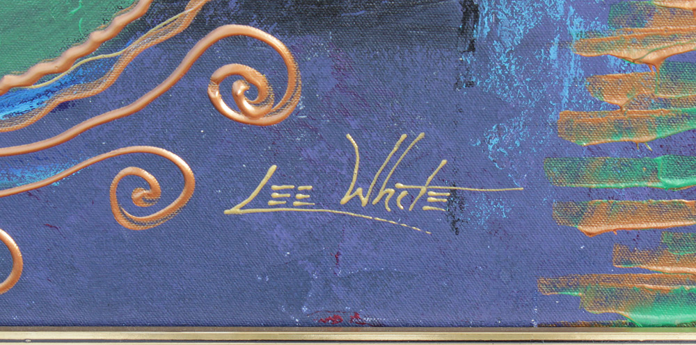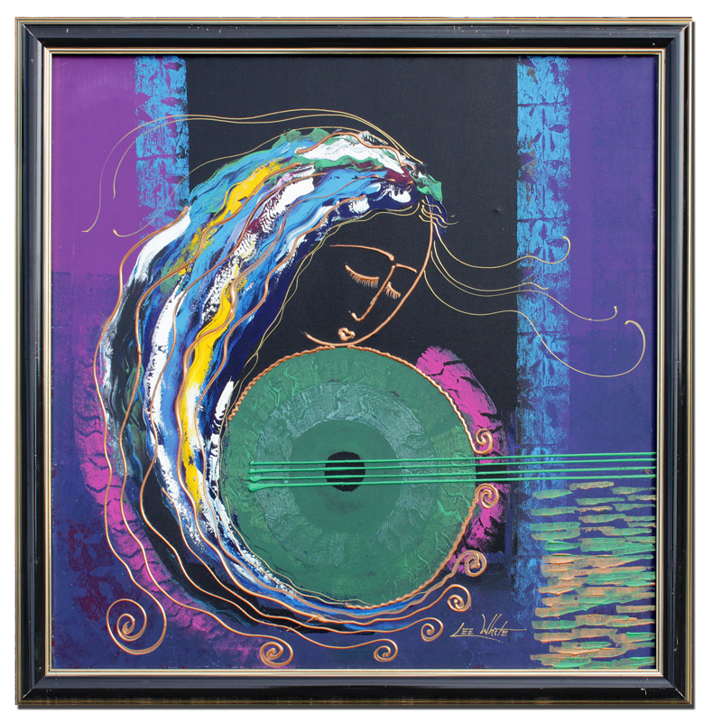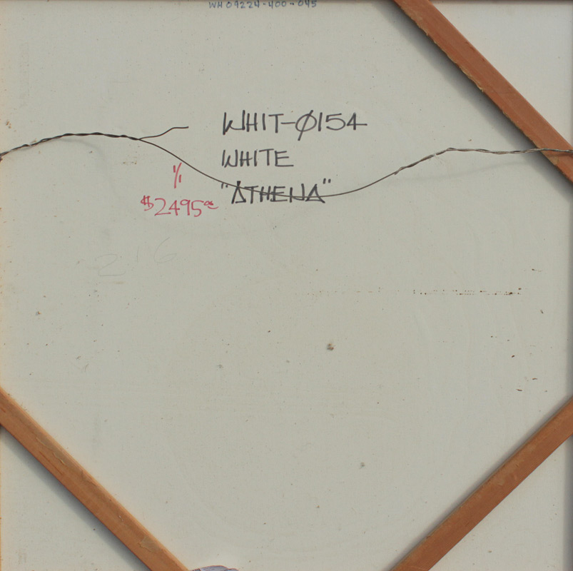 WHITE, Lee, (American, 20th Century): ''Athena'', Acrylic/Canvas, 36'' x 36'', signed lower right, titled verso with the price of $2,495, encased in black lacquer frame with wear 40'' x 40''.