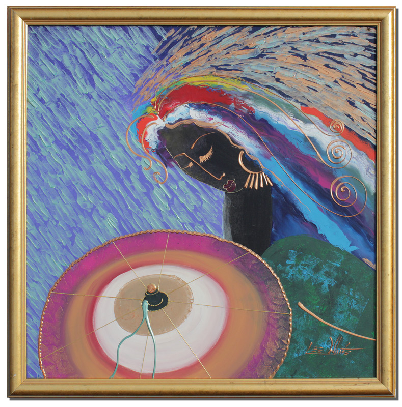 WHITE, Lee, (American, 20th Century): Young Girl with Parasol, Acrylic/Canvas, 36'' x 36'', signed lower right, contemporary gold frame 40'' x 39 3/4''.