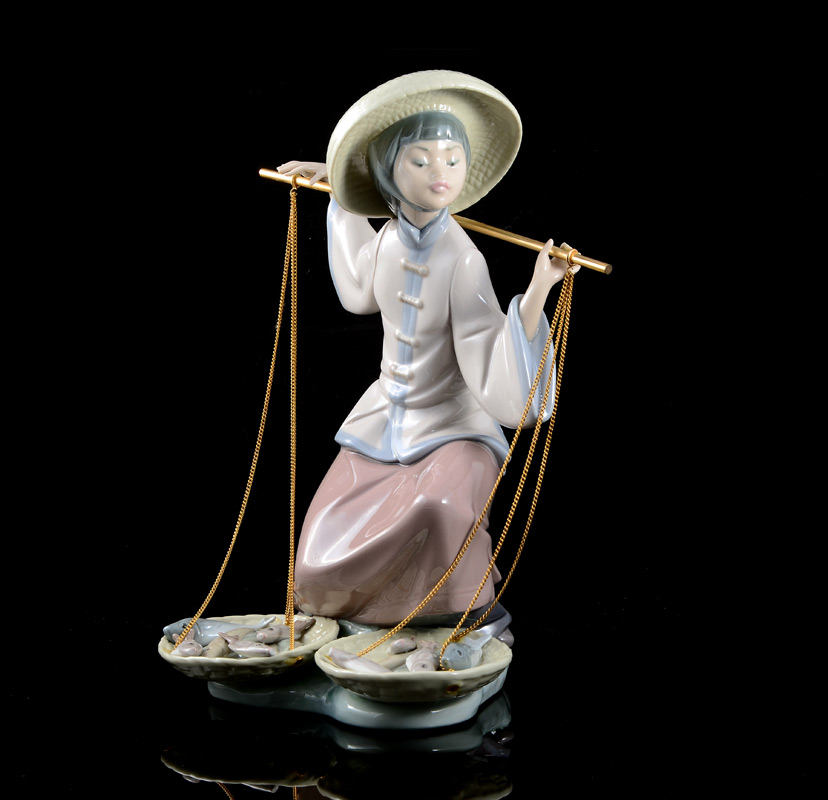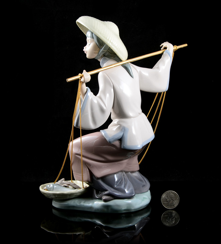 LLADRO PORCELAIN FIGURINE: FISH A PLENTY 5172, Salvador Debon sculptor, issued 1982 retired 1994, 9''h.