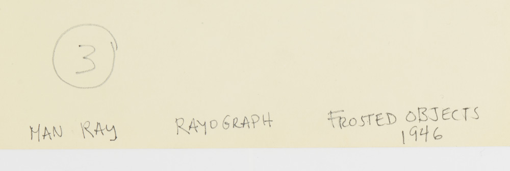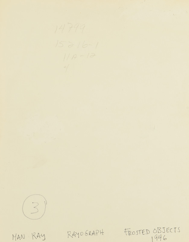 MAN RAY, AFTER,(American, 1890-1976): Photograph of his Rayograph, Frosted Objects, 1946, 7 1/16'' x 4 9/16''.