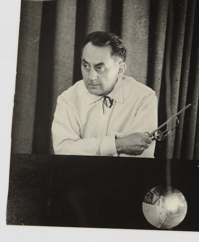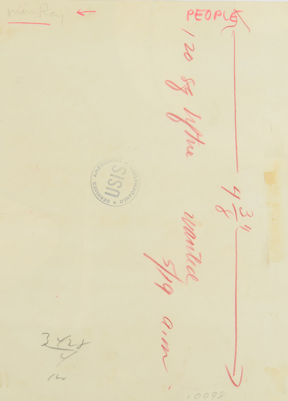 MAN RAY PORTRAIT PHOTOGRAPH: Photographer unknown, 8 3/4'' x 6 1/2'', USIS stamp verso.