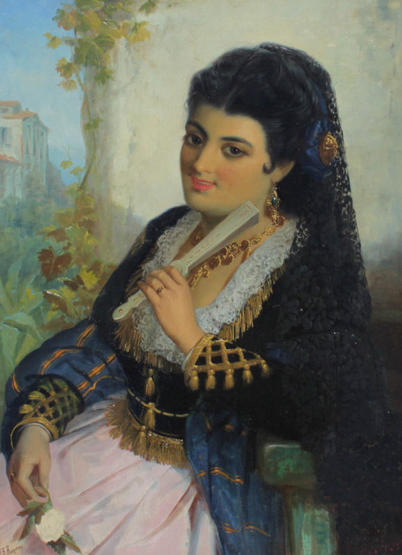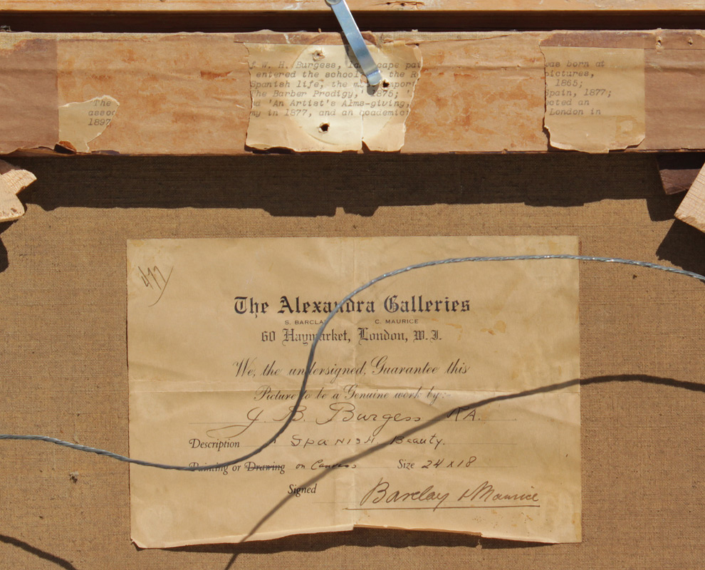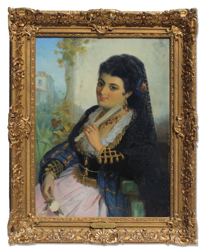BURGESS, John Bagnold, (British, 1829-1897): ''A Spanish Beauty'', Oil/Canvas, 24'' x 18'', signed lower left, Alexandra Galleries label affixed verso, pierce carved gilded gesso frame, 31'' x 24 1/2''.