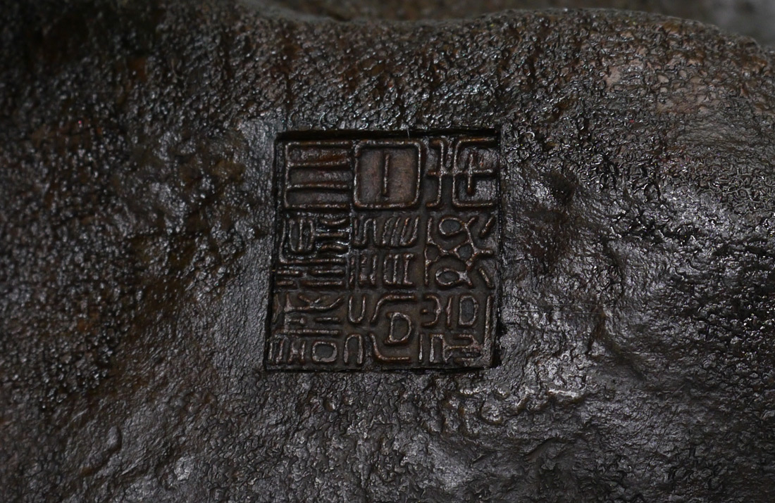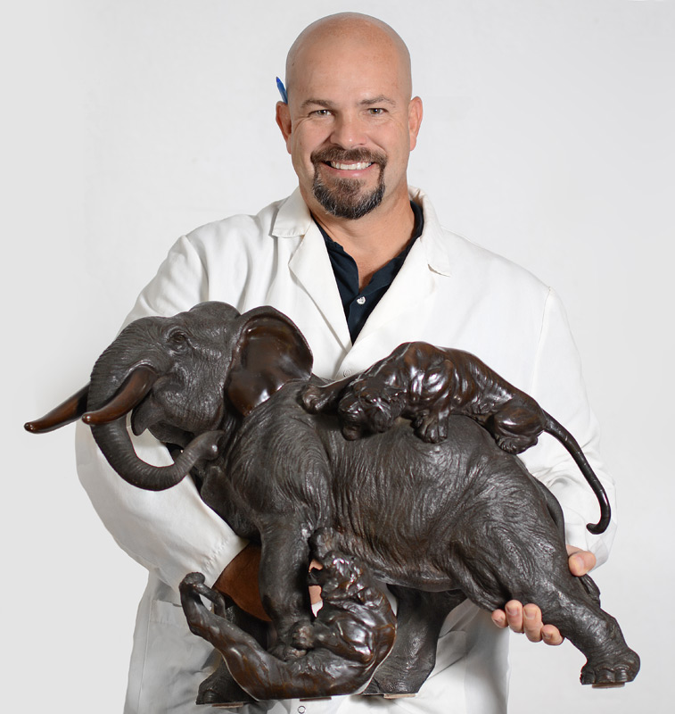 CONDITION: Unexplained flaw to tusk, several minor casting flaws.
