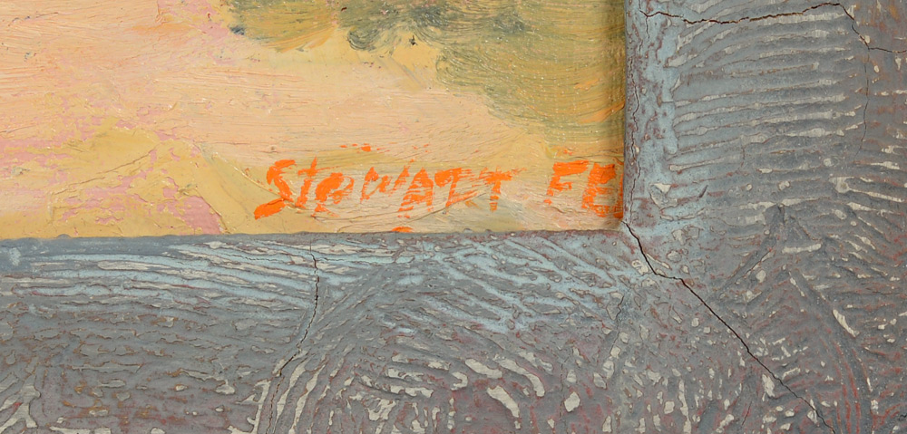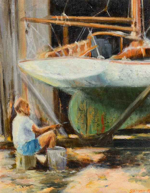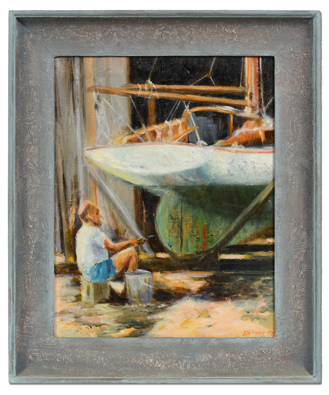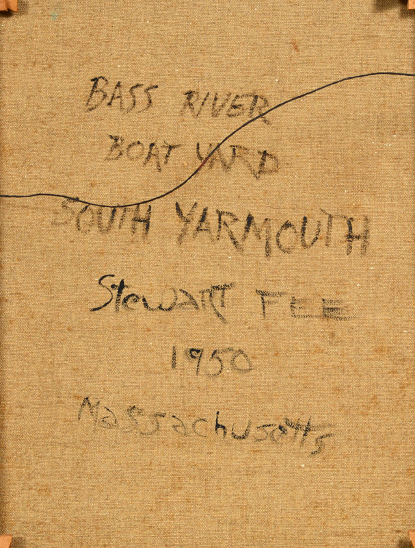 FEE, Stewart, (American, 20th Century: ''Bass River Boatyard, South Yarmouth, Massachusetts'', Oil/Canvas, 20'' x 16'', signed lower right, signed, titled, and dated 1950 verso, original frame 25 1/2'' x 21 1/4''.