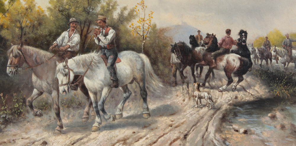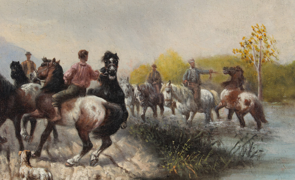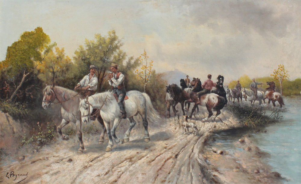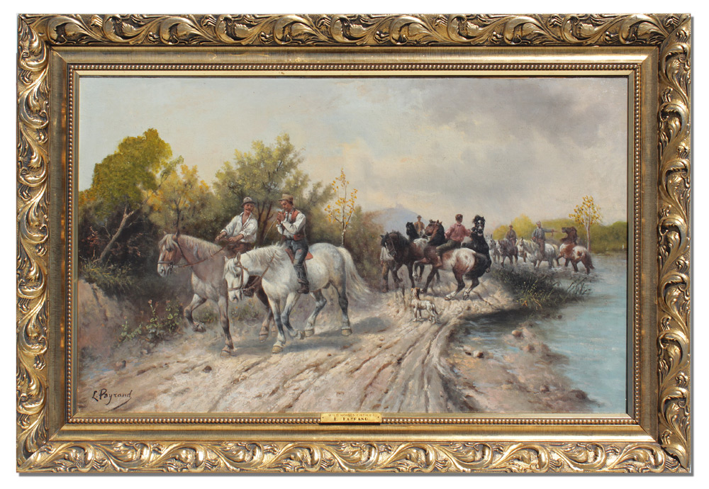 PAYRAUD, L., (French, 19th C.): ''Wild Horses'', Oil/Canvas, 19 3/4'' x 32'', signed lower left, carved and gilded gesso frame 26'' x 38 1/2''.