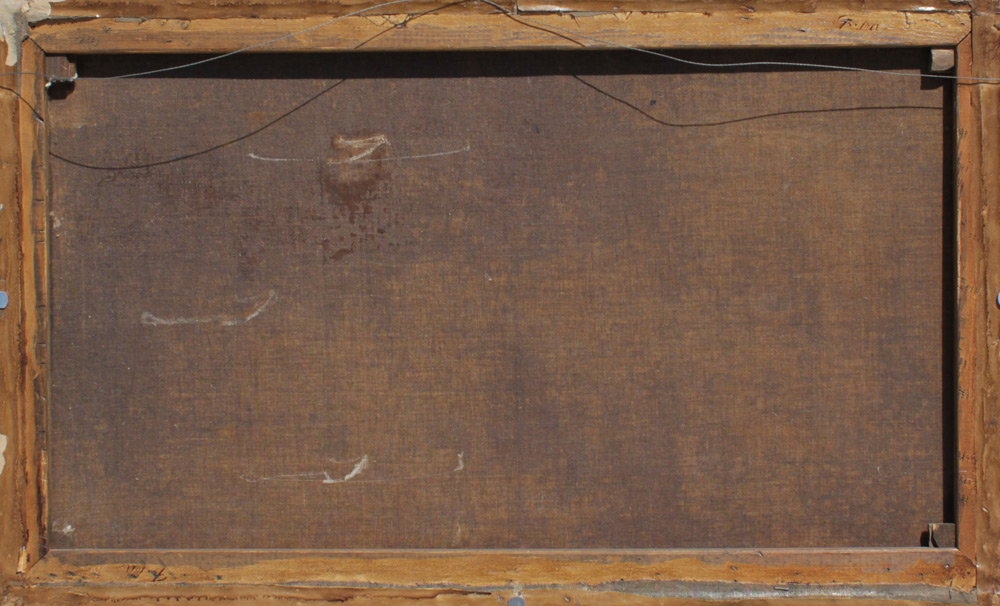 CONDITION: Relined, several sporadic touches of inpaint, mostly in the sky, several scattered minor abrasions, very mild craquelure, the frame does have some wear and missing gesso.