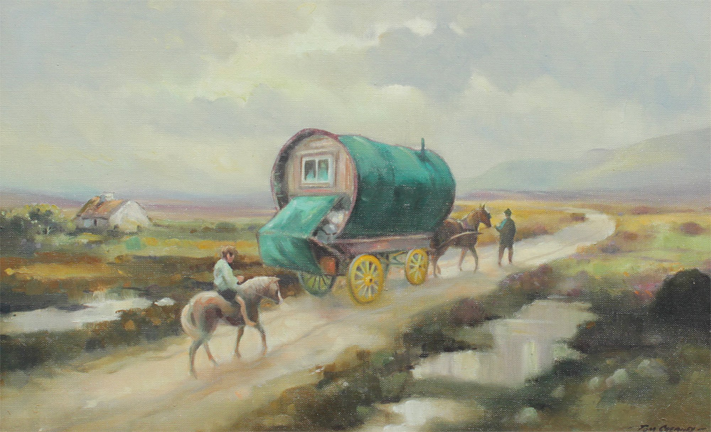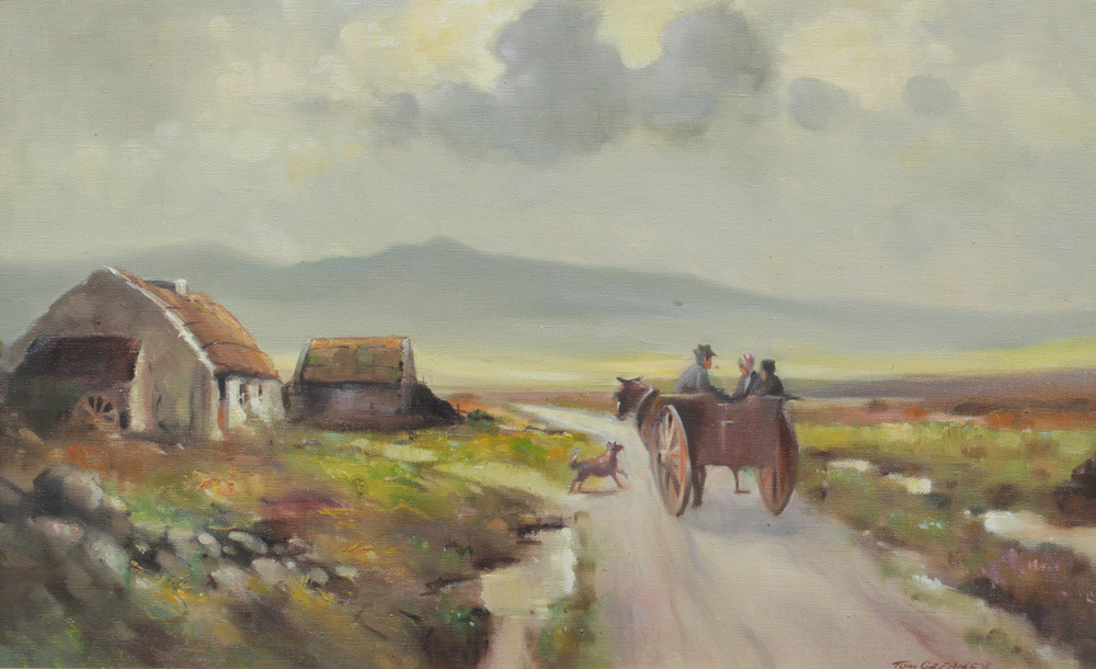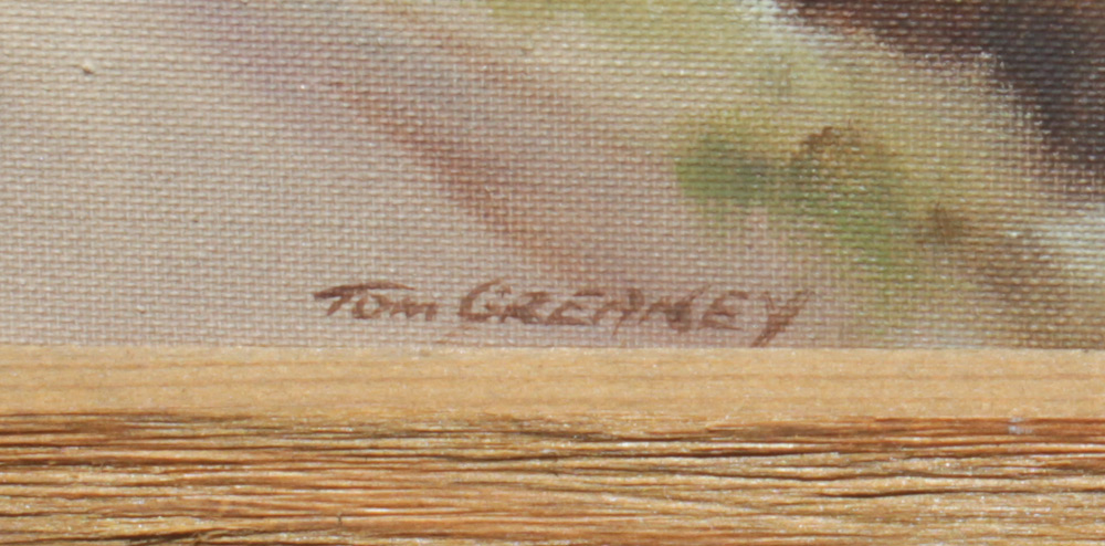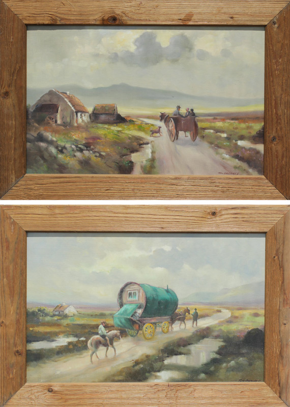 GREANEY, Tom, (Irish, 20th/21st Centuries): 2 Irish Landscape Paintings with Cottages, Oils/Canvasboard, Sight size 14 1/2'' x 22 3/4'', both signed lower right, matching barn wood style frames 18 3/4'' x 27 1/4''.