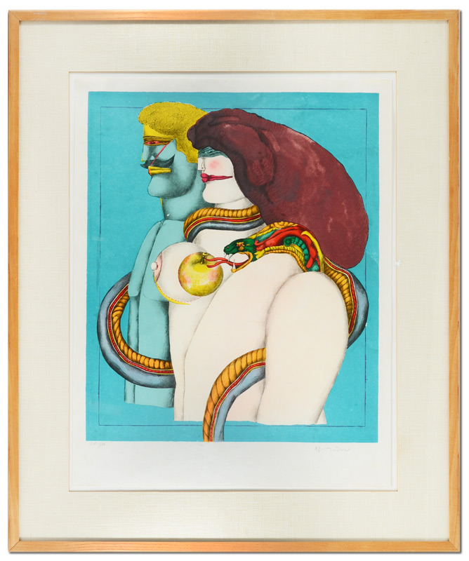 LINDNER, Richard, (German-American, 1901-1978): Adam & Eve, Lithograph, 28'' x 21 1/2'', signed lower right, #'d SP 11/26 lower left, contemporary wood frame 37 1/2'' x 31''.