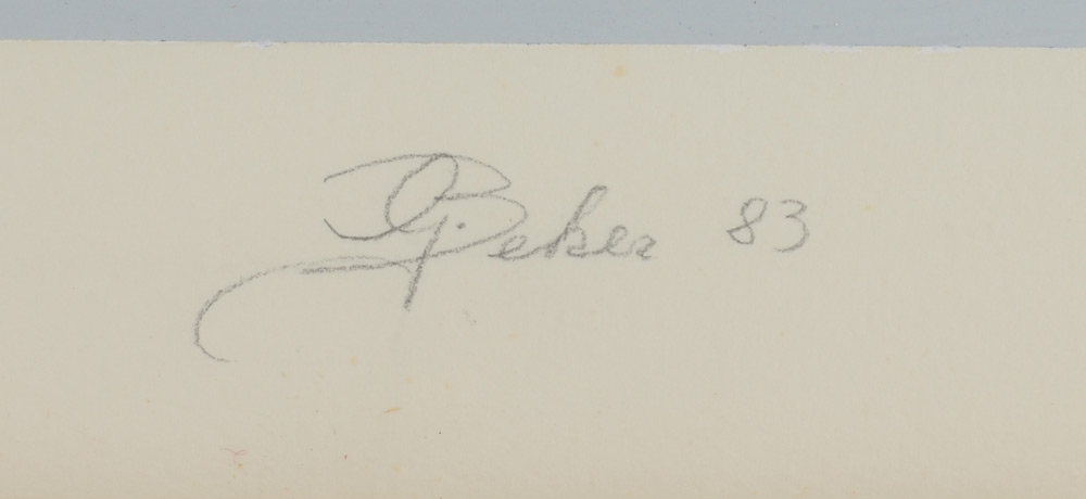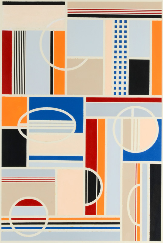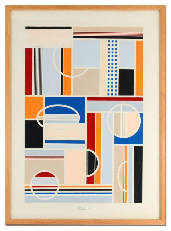 BEKER, Gisela, (German-American, 1932- ): Hard Edge Geometric Composition, Sight size with margins 29 1/2'' x 21 1/2'', signed in the lower mid margin, dated '83, framed 31'' x 23''.