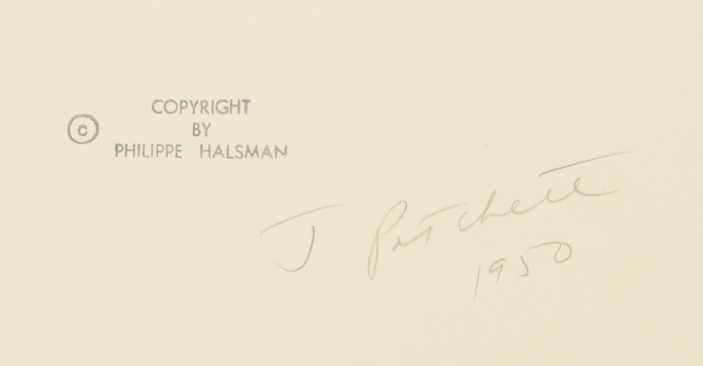 HALSMAN, Philippe, (Russian, 1906-1979): Early Still Photograph of Jean Patchett, ''J Patchett 1950'' verso, 14'' x 11''.