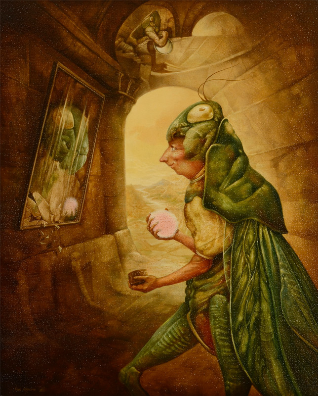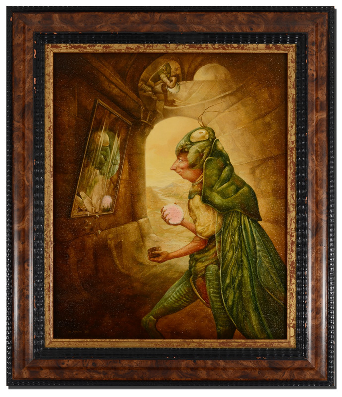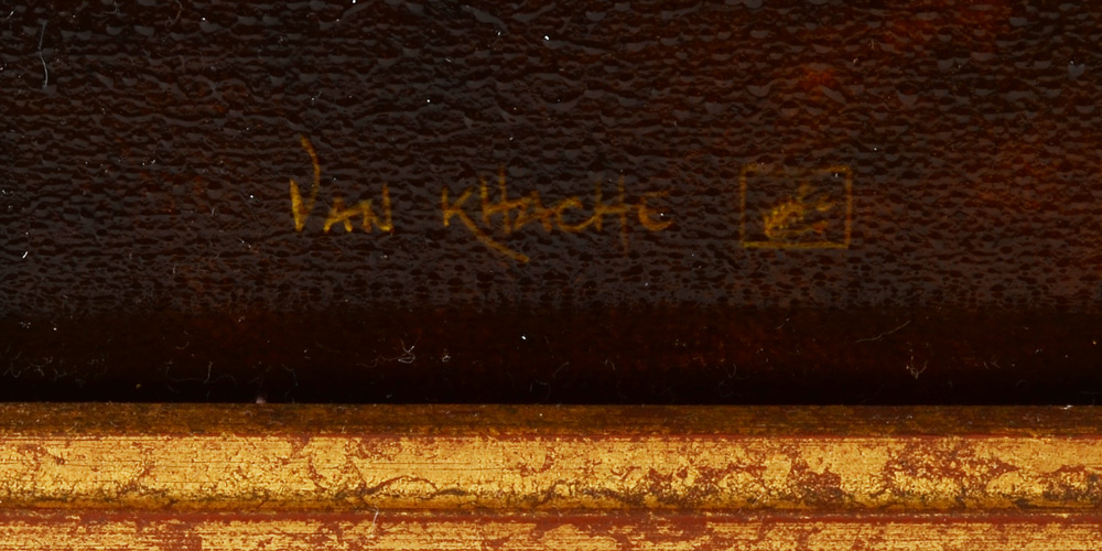 VAN KHACHE, Serge, (French, 1946- ): ''Narcisse'', Oil/Canvas, 18'' x 15'', signed lower left, signed, titled and dated 1986 verso, custom burl wood frame 23 1/2'' x 20 1/4''.