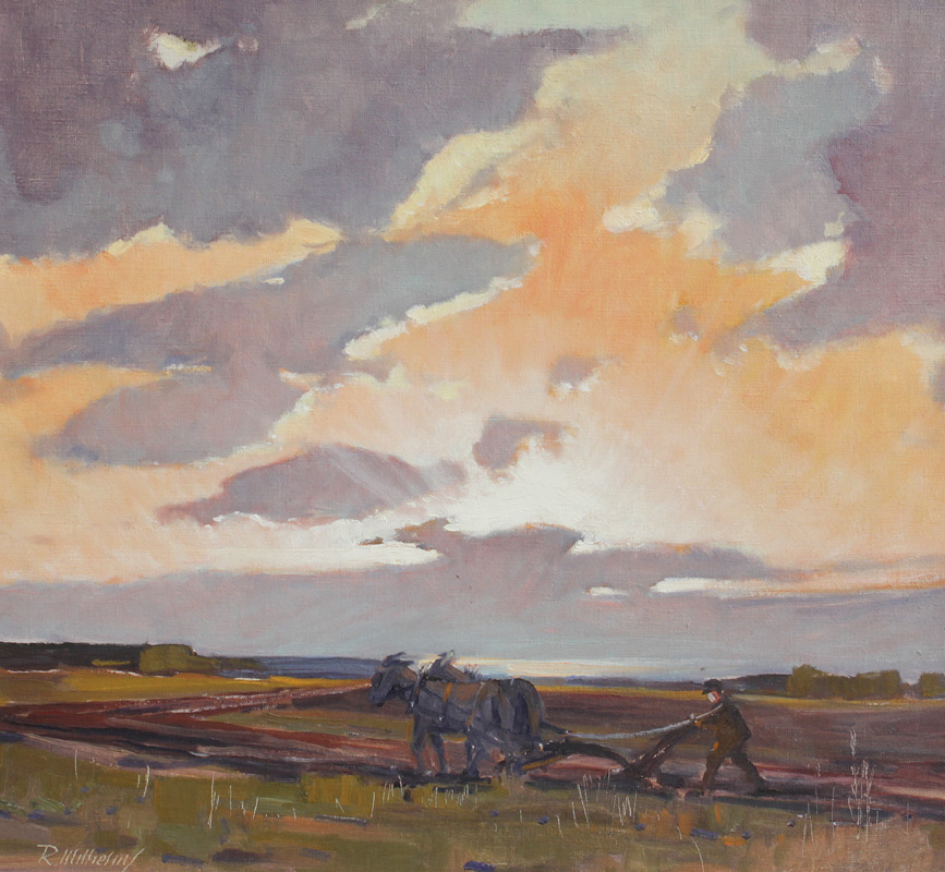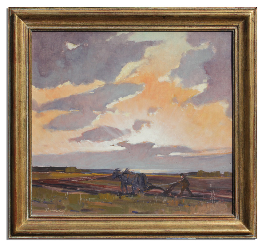 WILHELM, Roy E., (American, 1895-1954): Plowing at Sunrise, Oil/Canvas, 20'' x 22'', signed lower left, framed 24 1/4'' x 26 1/2''.