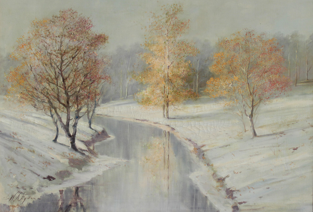 EYDEN, William Arnold, Jr., (American, 1893-1982): Winter Stream, Oil/Canvas, 24'' x 34 1/2'', signed lower left, period gilded gesso frame 32 1/2'' x 42 1/2''.