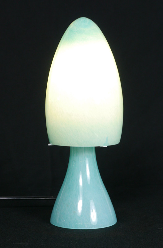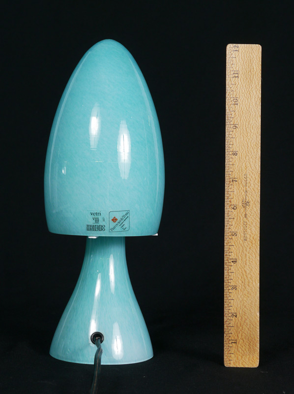BAROVIER & TOSO BLUE GLASS LAMP: Glass shade and base, label intact, approx. 12 1/2'' tall.