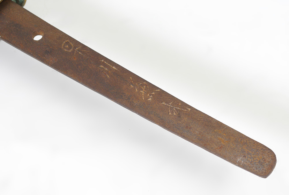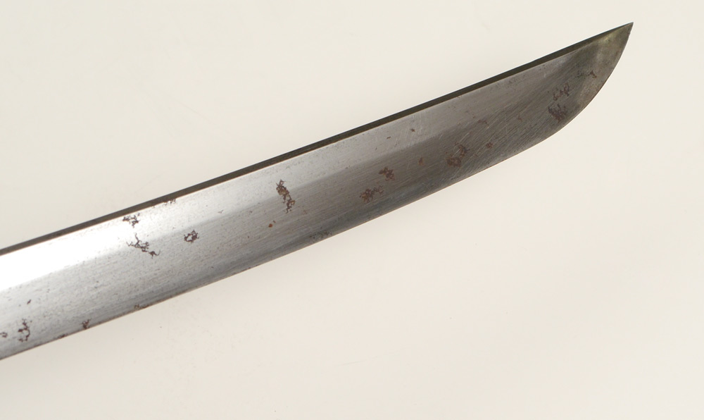 CONDITION: Blade has been scratched and sandpapered, dented habaki, saya with splits and missing original leather. Sold as-is.