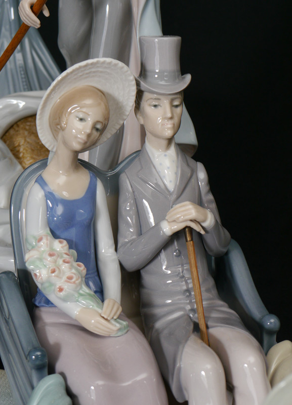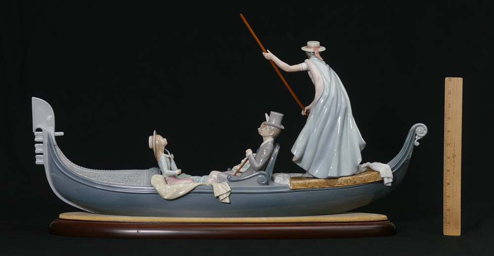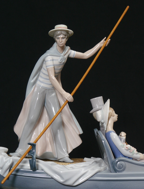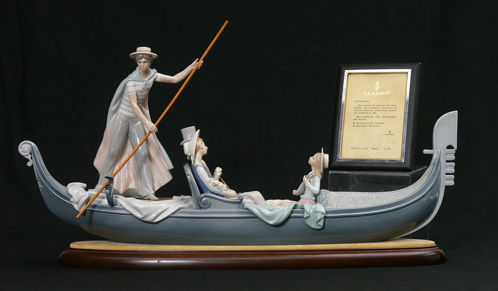 LLADRO PORCELAIN FIGURINE: Limited Edition IN THE GONDOLA #1350, Francisco Catala sculptor, signed and numbered 684 on the bottom, issued 1978, approx. 17.75''h. x 30'', with base.