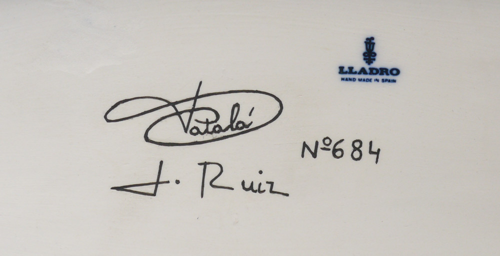CONDITION: No real condition problems noted, there is an under the glaze firing split on the stern of the boat. Fading to velvet on base. No box but with framed certificate.