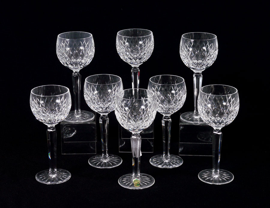 WATERFORD CRYSTAL SLANE WINE STEMS: 8 wine stems in the Slane pattern, 7 3/8'' h.