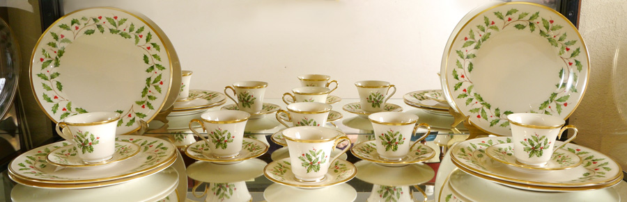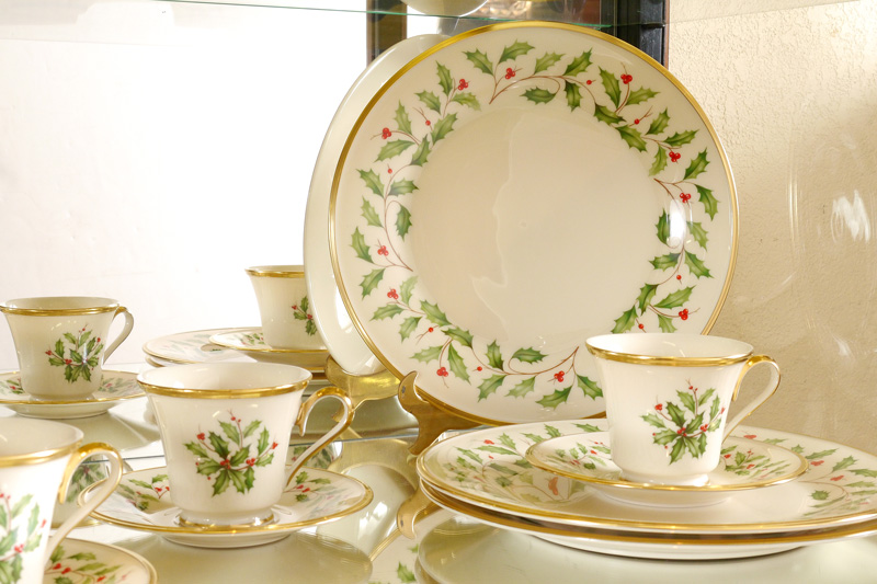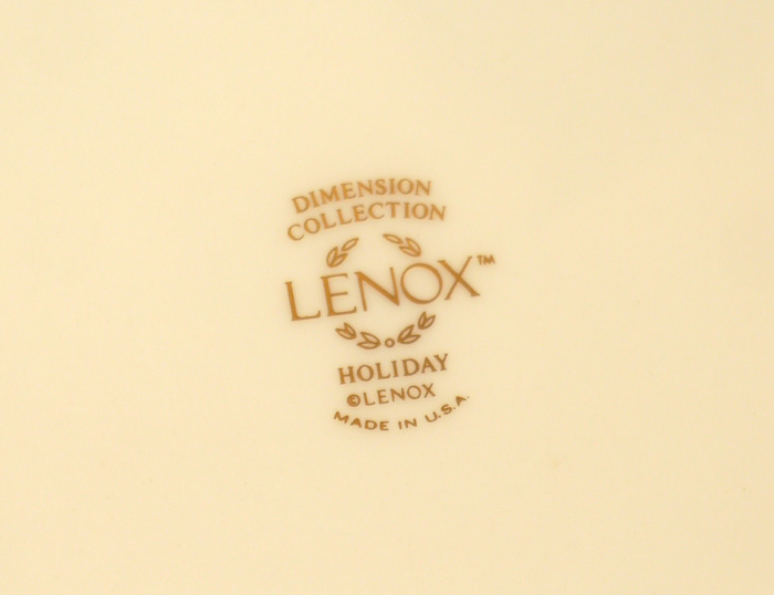 LENOX ''HOLIDAY'' FINE CHINA: 18 piece to include 6 each of dinner plates, cups and saucers.